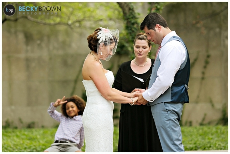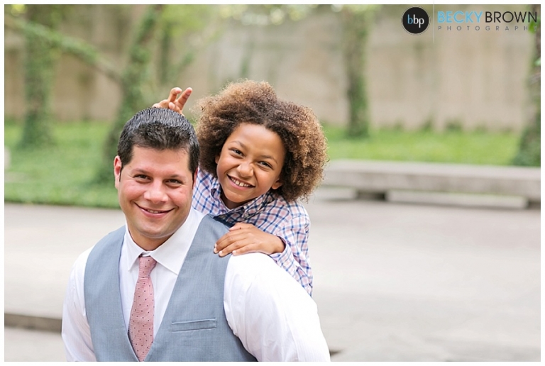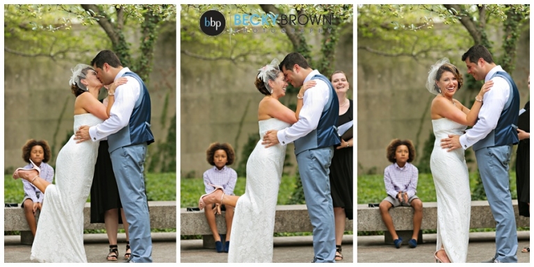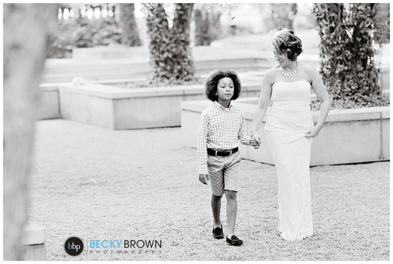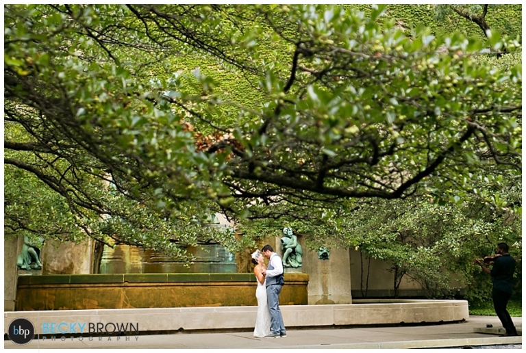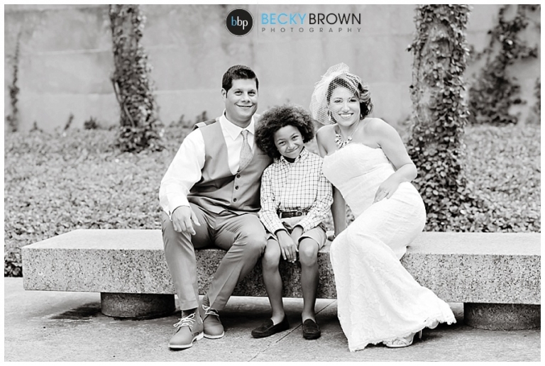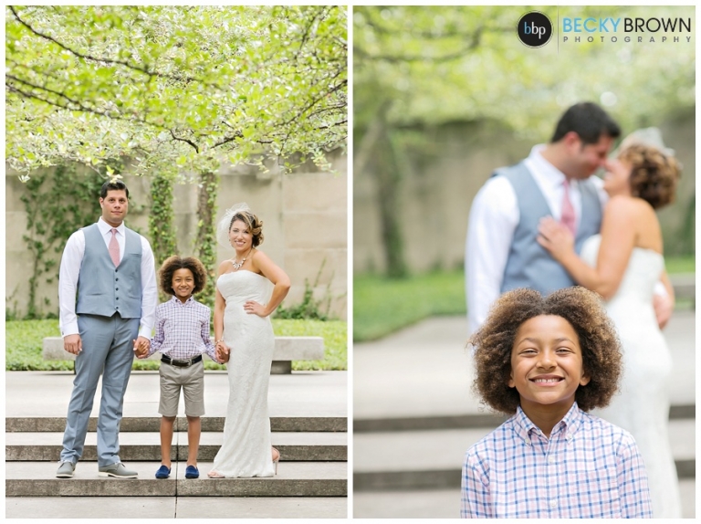 Meet Noura and George! They had a gorgeous elopement at the Chicago Art Institute Garden back in August. Our associate photographer Rebecca covered this one and when I saw the photos I was in love with the setting and the love of this family! Noura’s adorable son walked her down the “aisle” and was their witness and wedding party. A local musician played for the ceremony and as they shared a first dance in the garden afterwards.