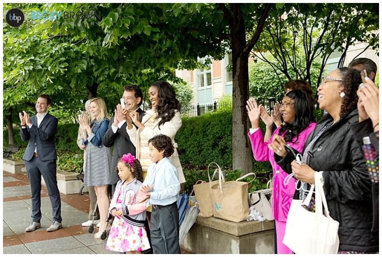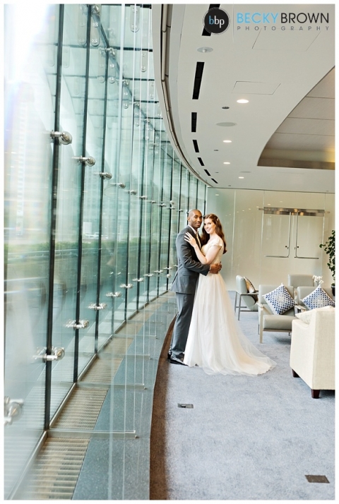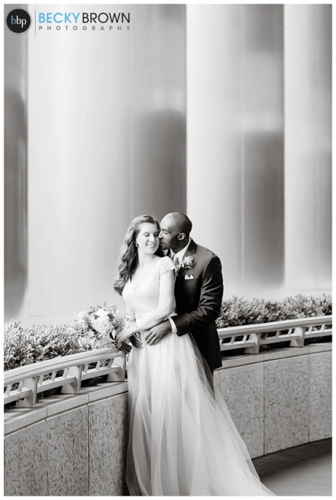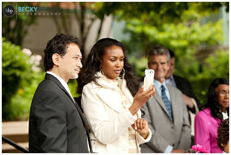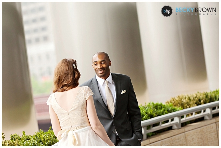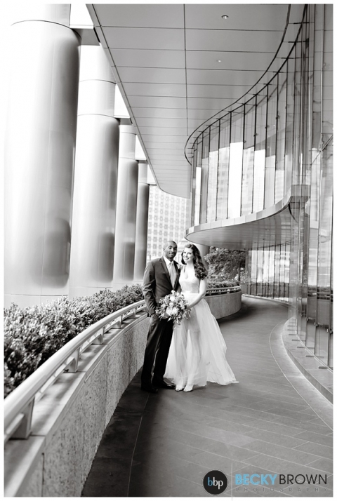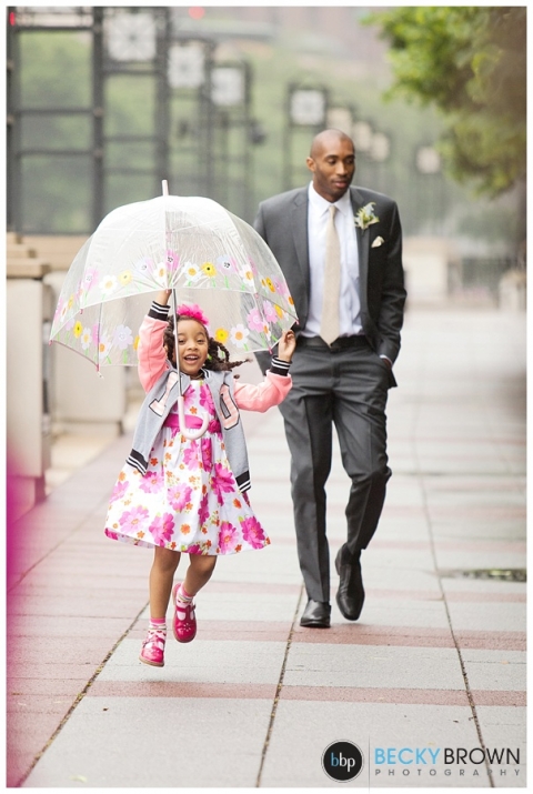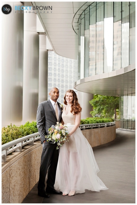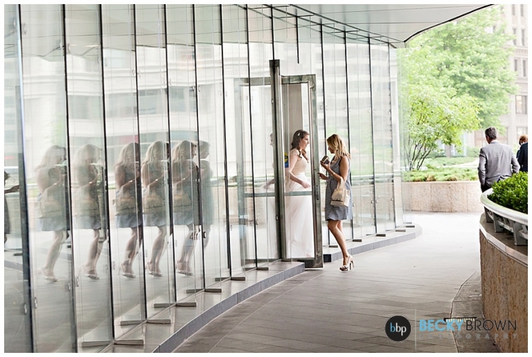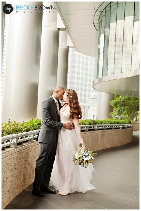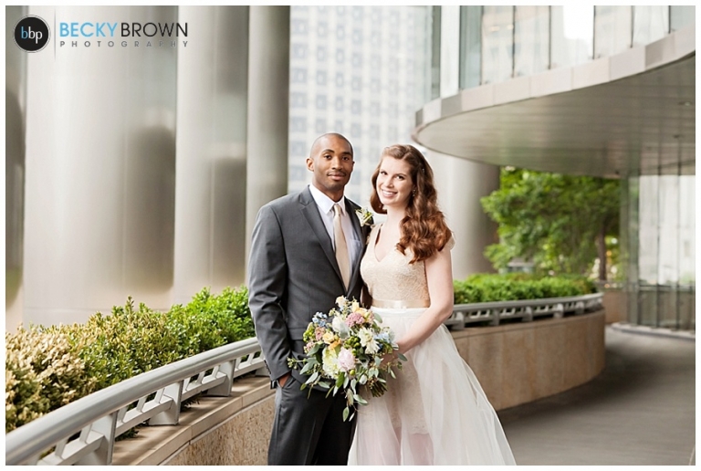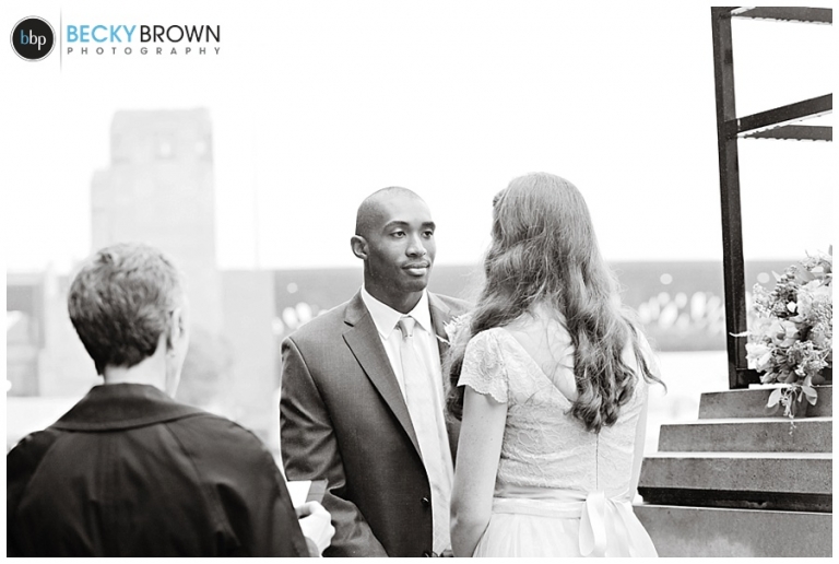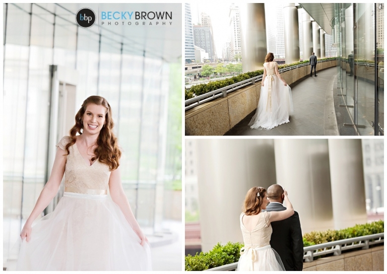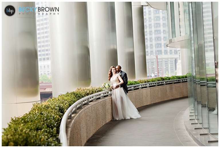 I met them at the Trump Hotel where they were staying for first look and portraits. I love the side walkway at the hotel for a number of reasons, but particulary in this case because it’s covered so we were able to shoot without getting drenched. After some portraits in that area we headed over to the riverwalk to meet their guests for the ceremony. Luckily the rain slowed to a mist while they said their I Do’s (you can see it picked up a bit by ring exchange as some drops are visible in the images).
