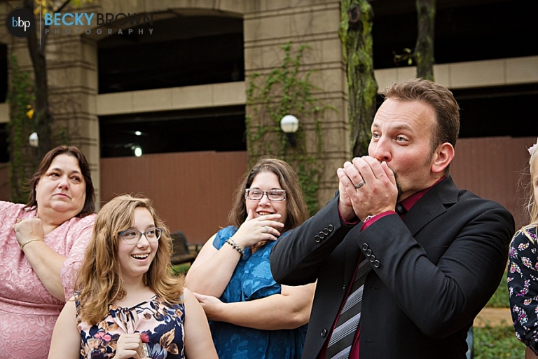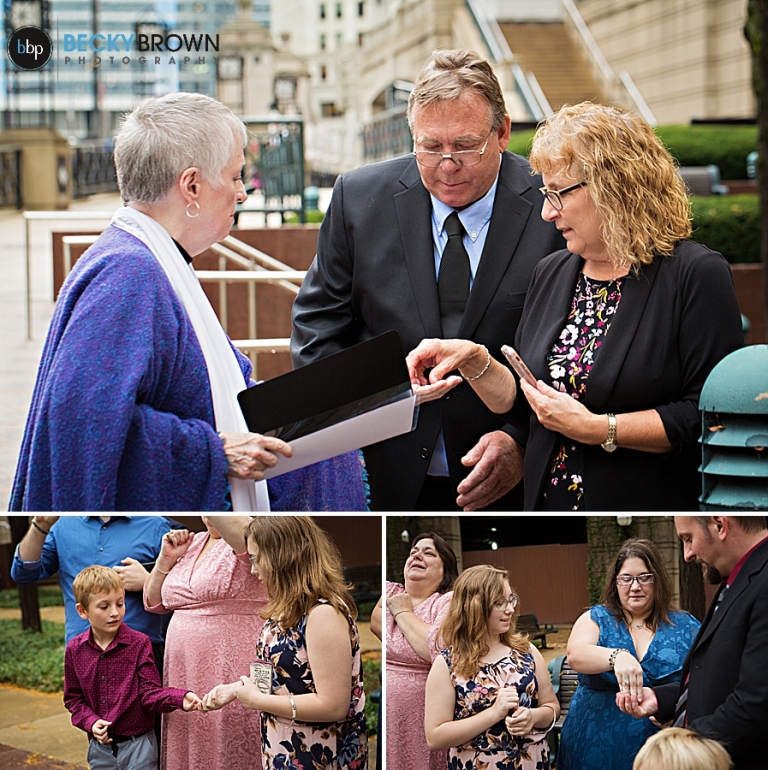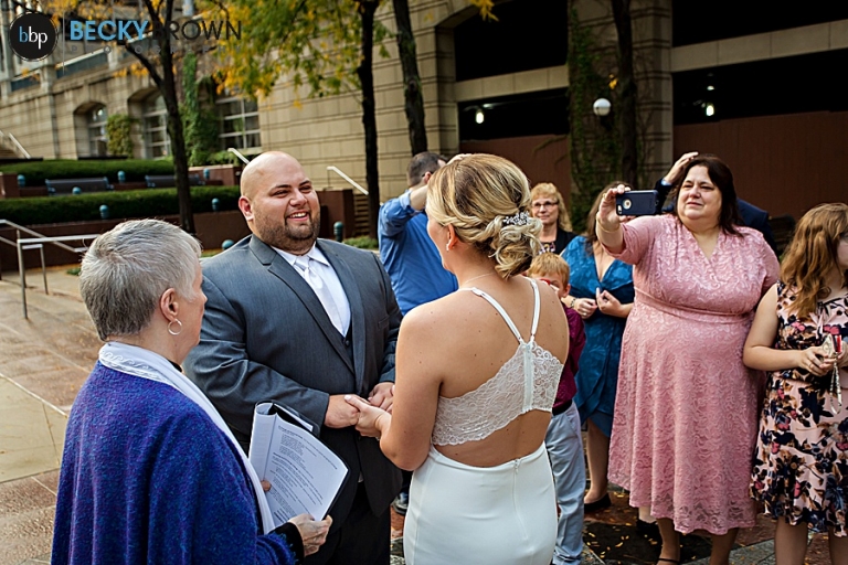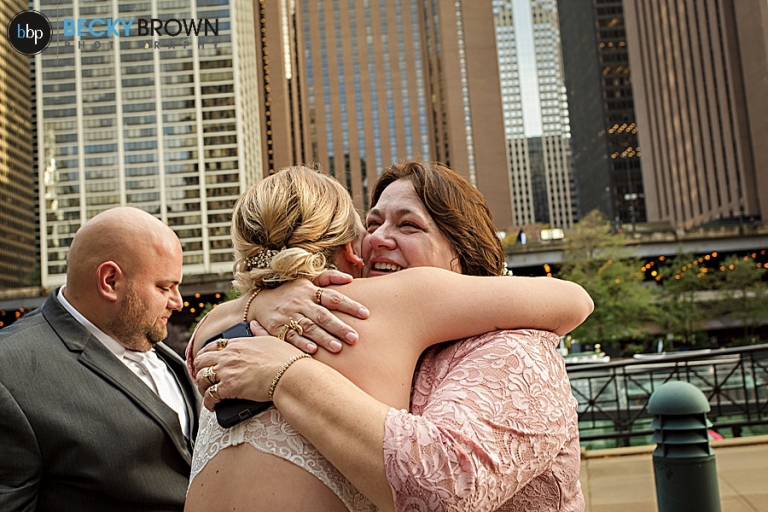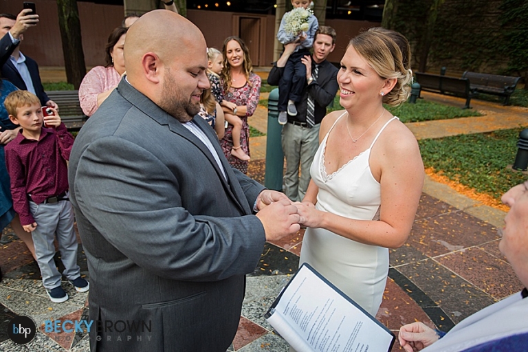 So after first look at the hotel we headed to the Cultural Center. Shout out to the Dana Hotel for letting us up to the bar area before it opened since it was raining! Before we left we had decided to stick with our plan for an outdoor ceremony, but we moved locations to the riverwalk. Our original spot was out by the lake and if it were to start raining there wasn’t cover anywhere nearby. At least this way we could easily sneak in a building nearby if the worst happened.