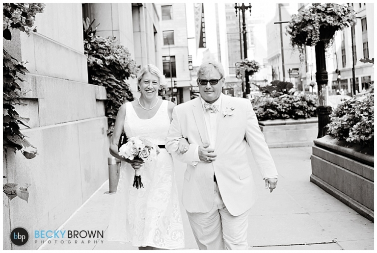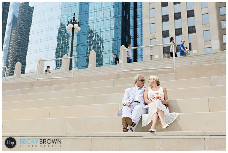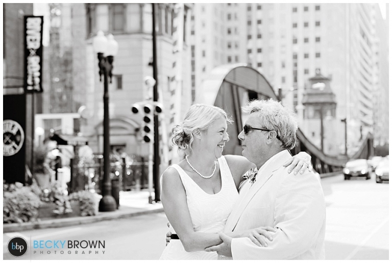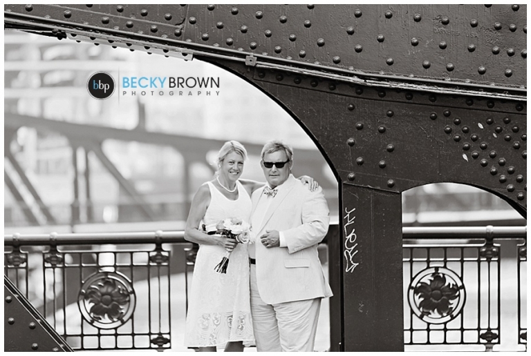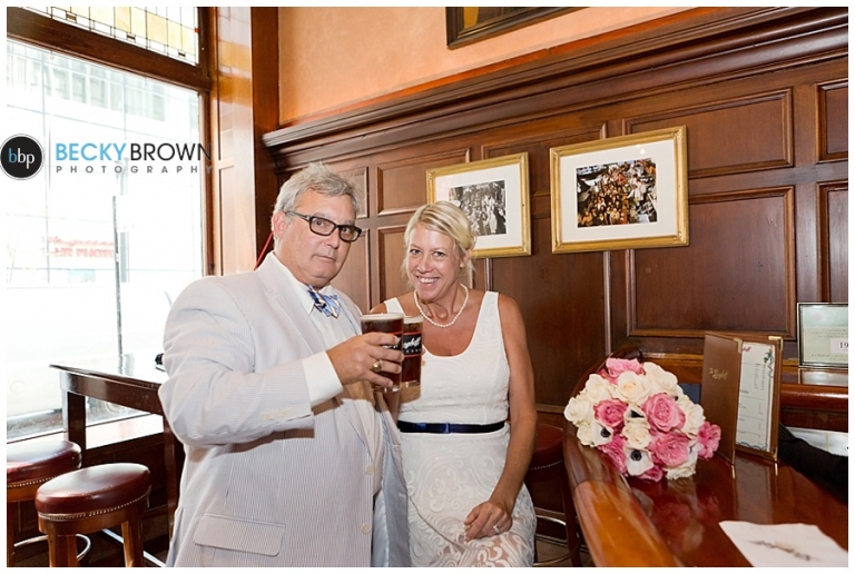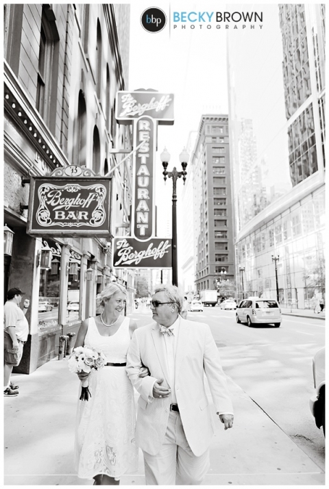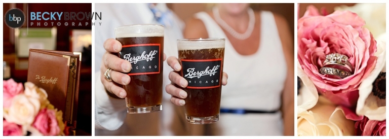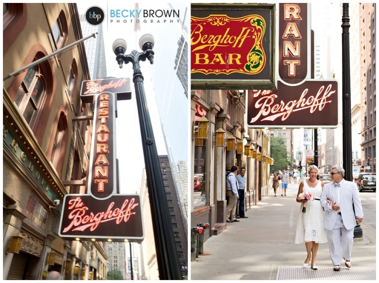 After their ceremony we took some photos there and around the LaSalle Bridge before heading to Berghoff’s. Linda had mentioned that she used to meet her Dad there for brats so I suggested that we make it our last stop so they could stay and enjoy lunch and some beers before the game. If you haven’t been there definitely make a stop. They have delicious food, great beers and a big gluten free selection (thank you!).