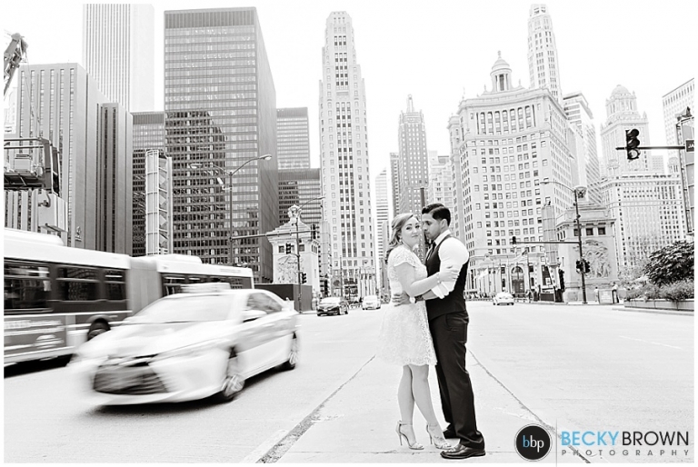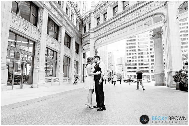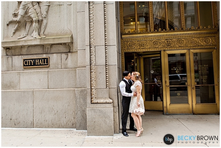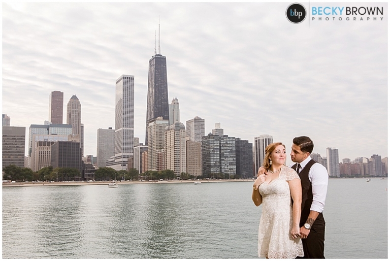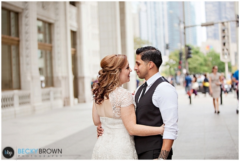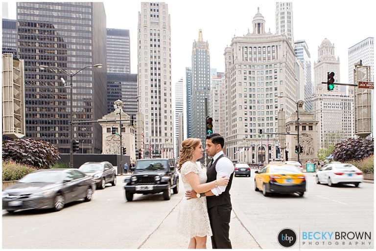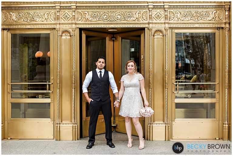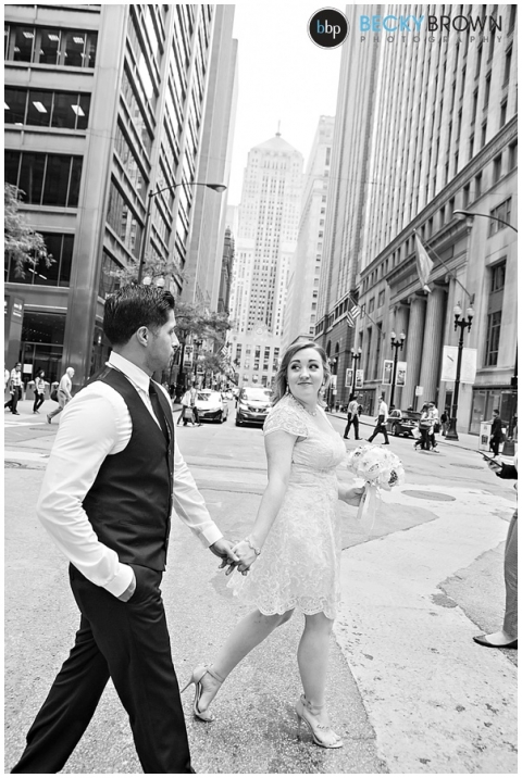 Meet Tara & Ron! They traveled up from San Antonio to elope here in Chicago! I met them downtown at city hall for their private ceremony at the courthouse. From there we headed out around the city for some photos. They were a blast to hang out with and I love Tara’s short lace dress! It was a perfect fit for the occasion. She ordered her bouquet on Etsy to complete her bridal look!