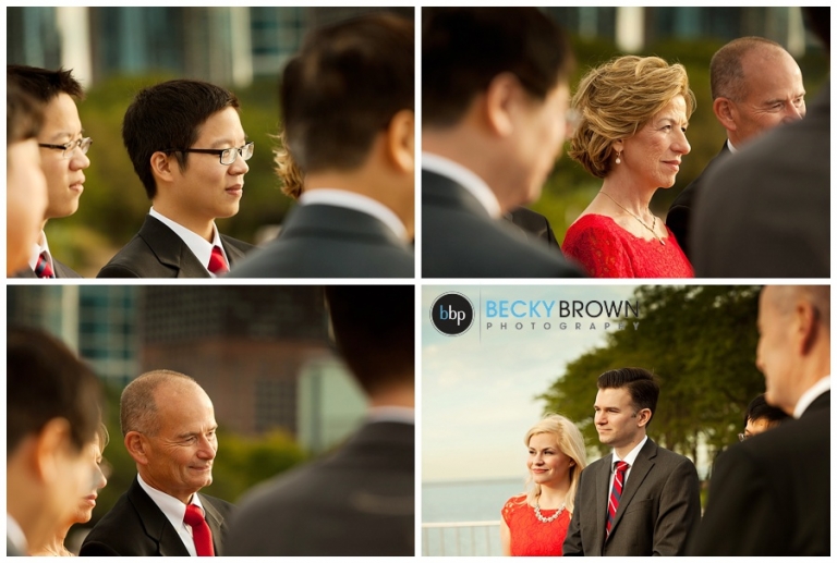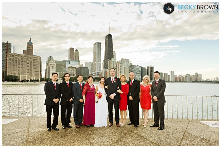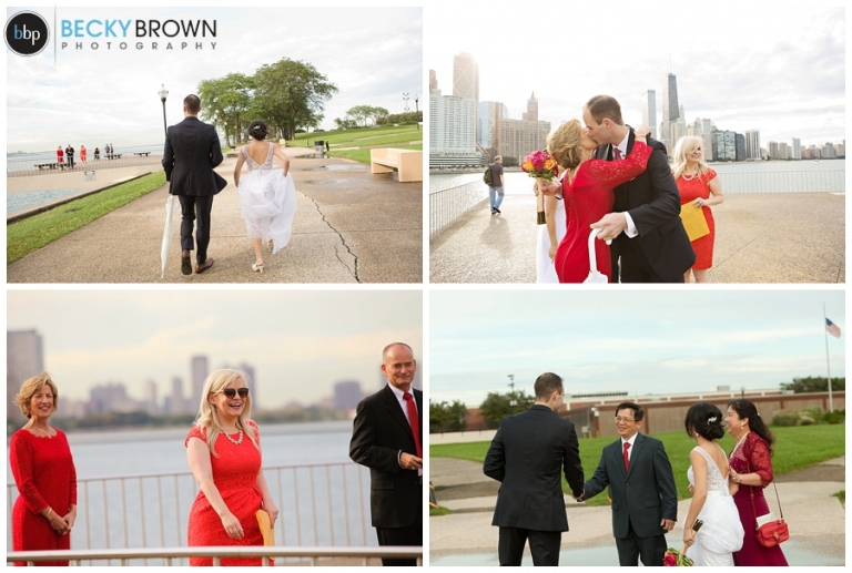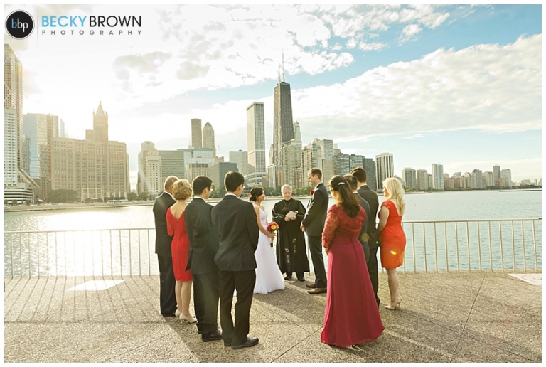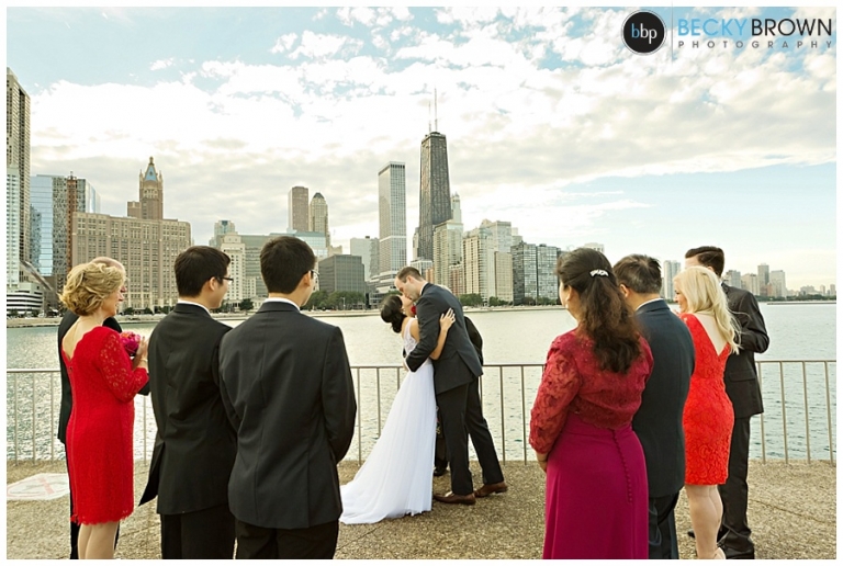 I met Jessie at their South Loop apartment for some detail photos while she finished getting ready. From there we headed to the Lurie Garden to meet Nick for a first look. We did some photos in the gorgeous sunlight, before traveling to Olive Park where their immediate families joined them for the ceremony. They had a member from each family do a reading or poem which was a nice touch. About halfway through the sun broke out of the clouds and it was this gorgeous sun soaked setting!