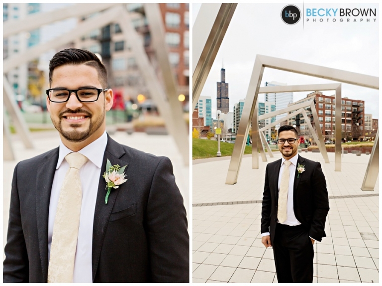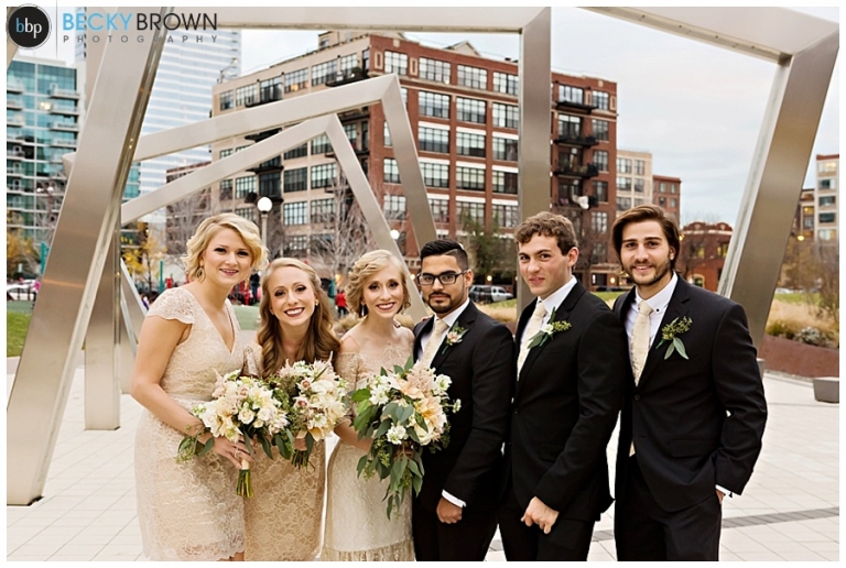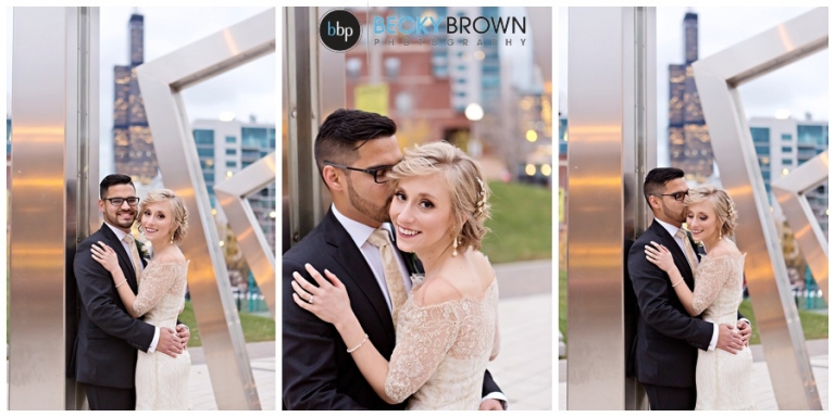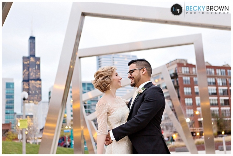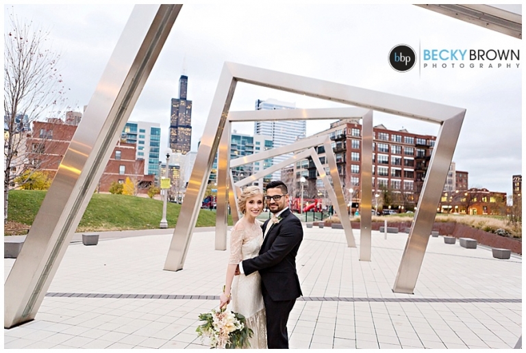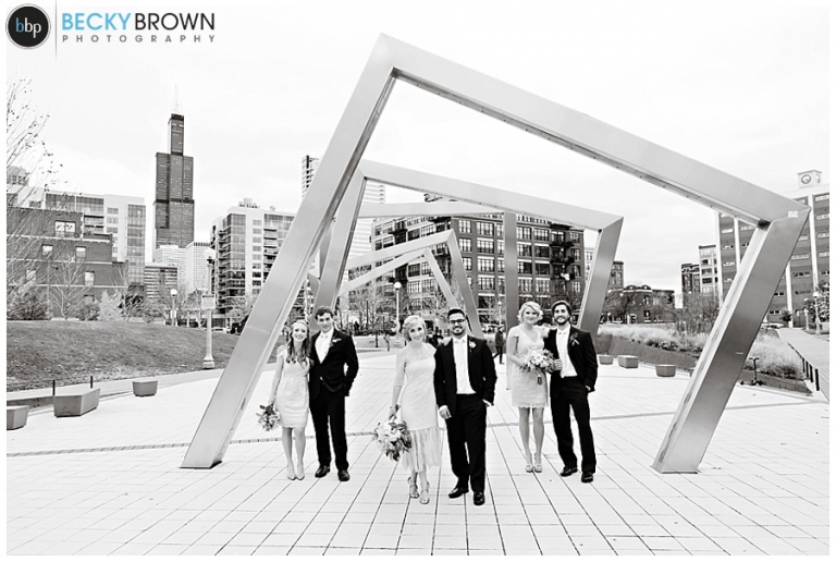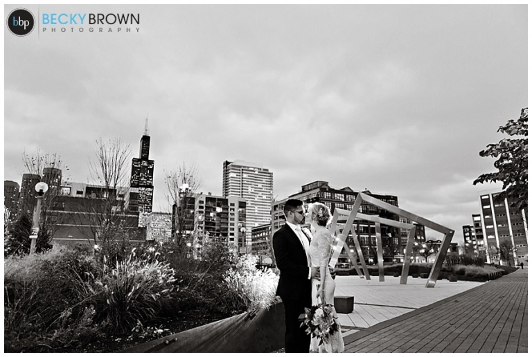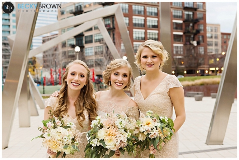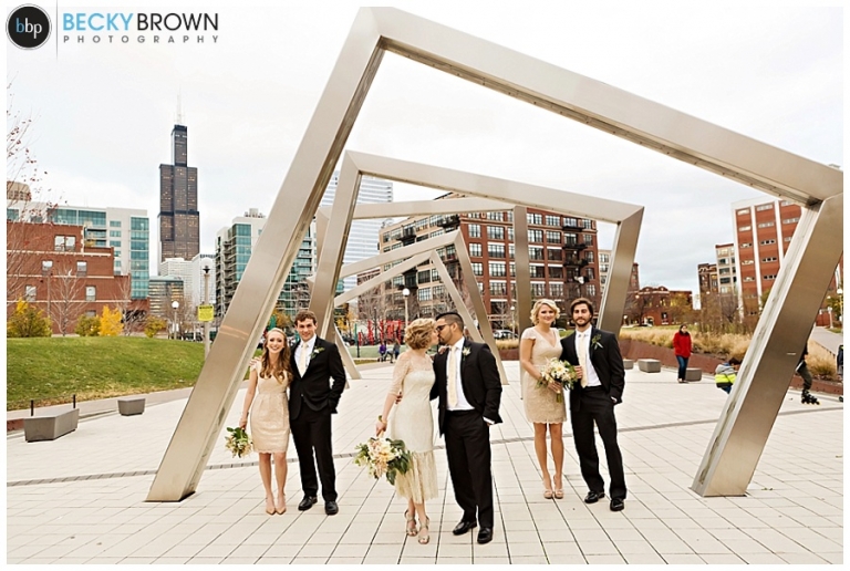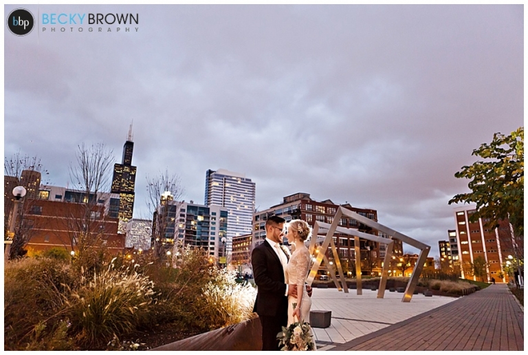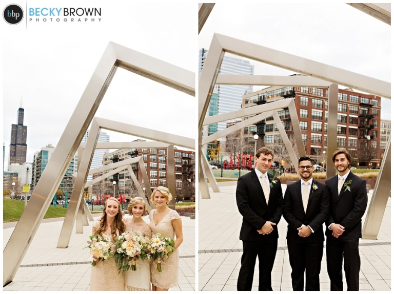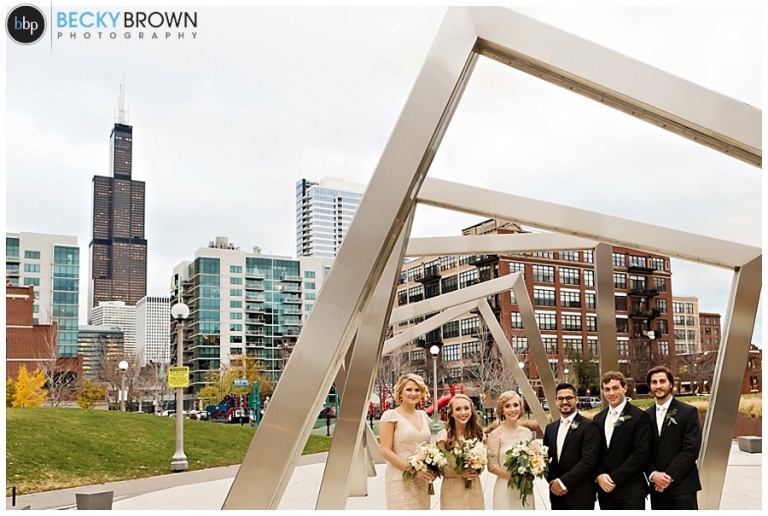 They fell in love with the space and the plans quickly come together! They hired our entire team (aka the Dream Team) to help them put together all the pieces of the day. I met them at the hotel where Kate has finished up the hair & makeup for all the girls and had them looking picture perfect! Christine had custom designed the most gorgeous bouquet to compliment their blush color palette for Leah and the girls. After first look at the hotel we headed toward the west loop for photos. A quick stop at Mary Bartleme Park was perfect as we managed to get some skyline views and the very last days of great fall color before the sun when down (it was November after all so it was dark by 5pm!).