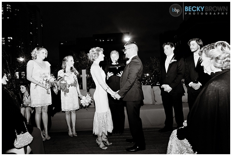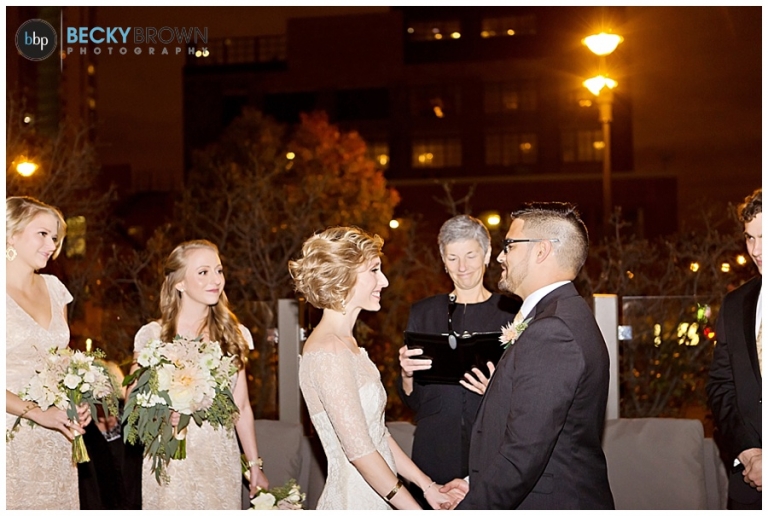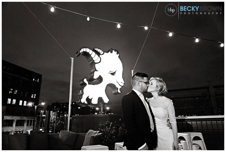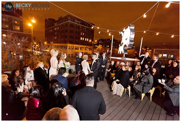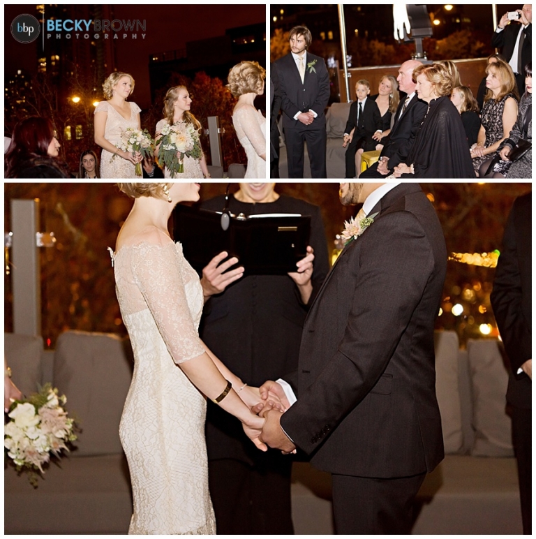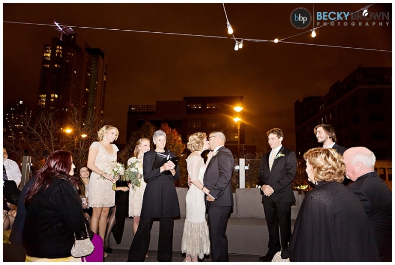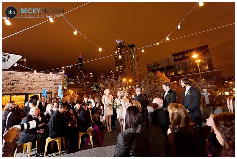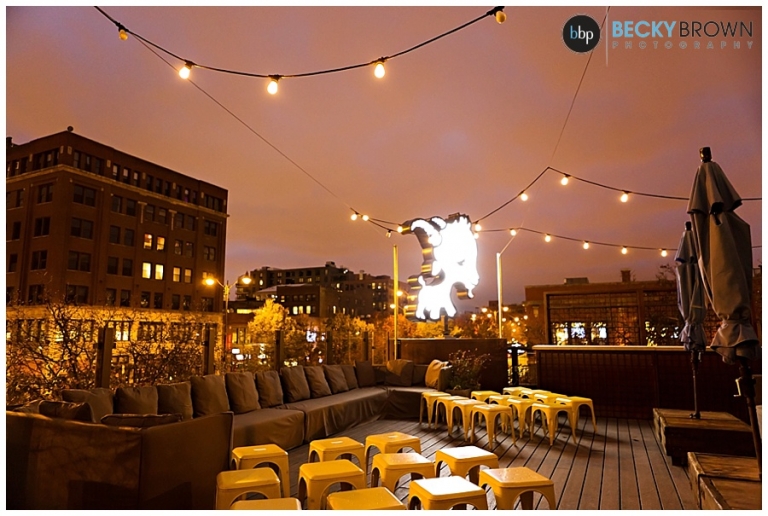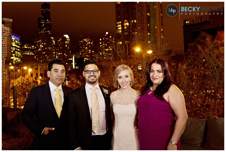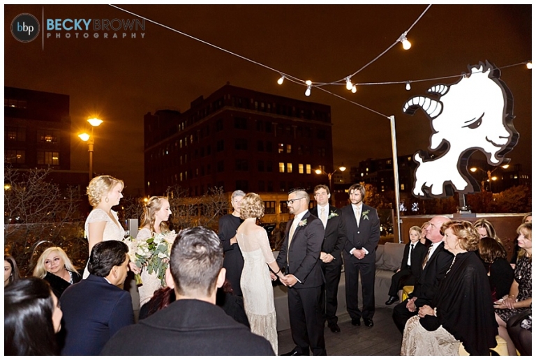 From there we headed to Little Goat where guests were arriving. Despite the chilly temps they stuck with the original plan of having the ceremony on the deck (and I’m so glad they did!). It was a particularly challenging lighting situation for me as it was completely dark by ceremony time. But a few speedlights on stands, the glow from the turning goat sign and the city lights ended up being the perfect mix! After the ceremony guests went inside for a cocktail hour and apps (hello goat empanadas!), while we toughed out the cold for some family photos.