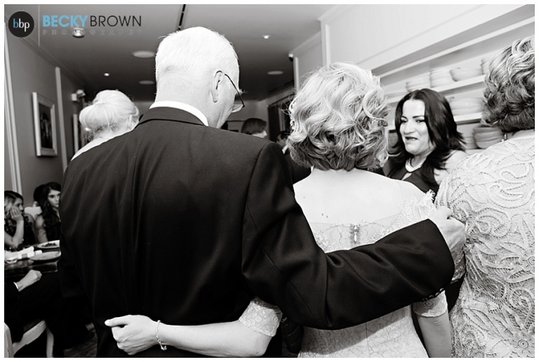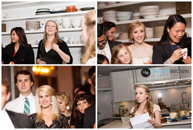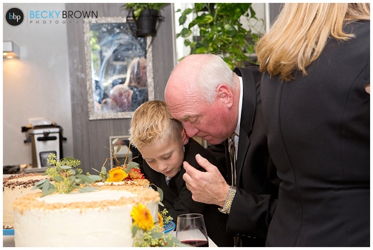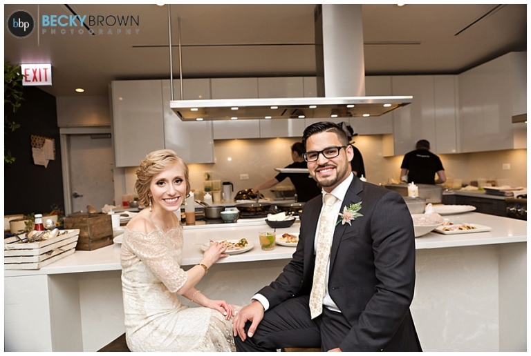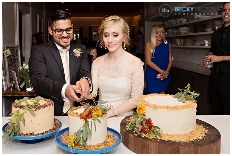 After joining their guests the main course was served buffet style so guests could enjoy at their own pace. I love the open air kitchen so you can watch them cook! Leah and Luis enjoyed their meal at the kitchen island – it’s like having dinner in mom’s kitchen! Throughout the night there were some toasts given and the cake was cut while the newlyweds chatting and celebrated with everyone!