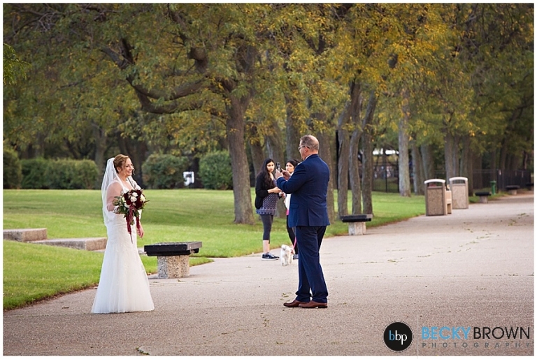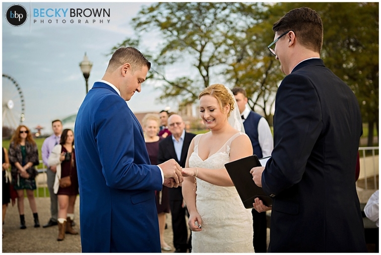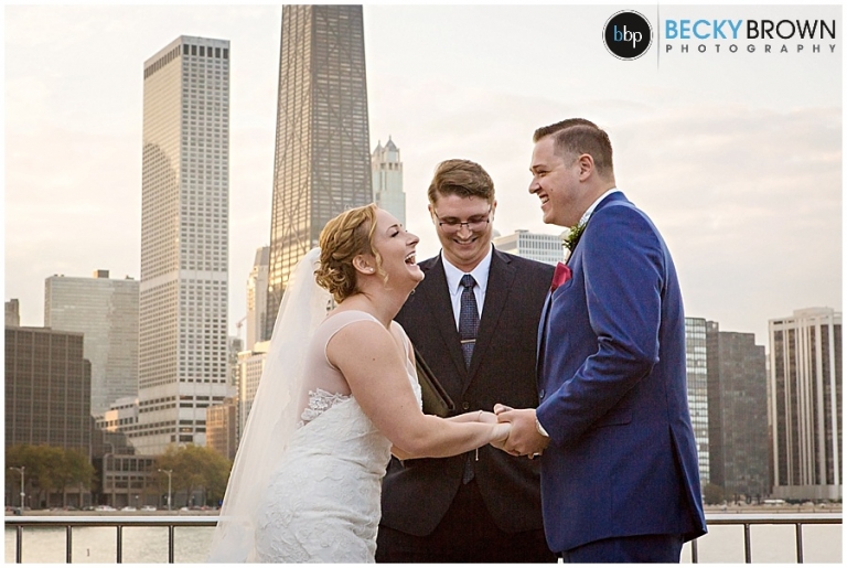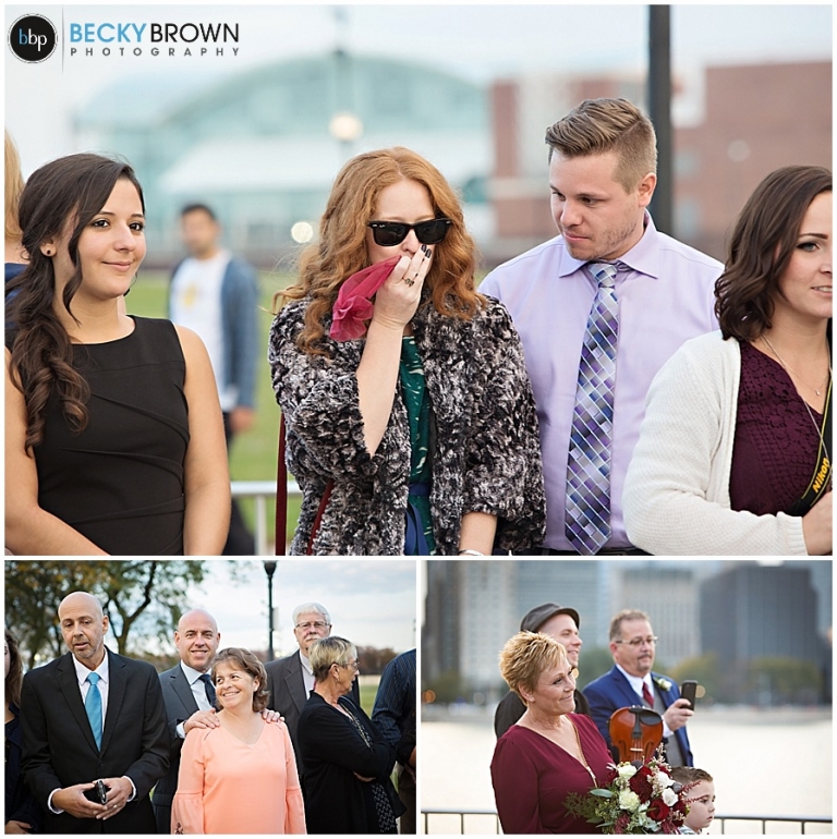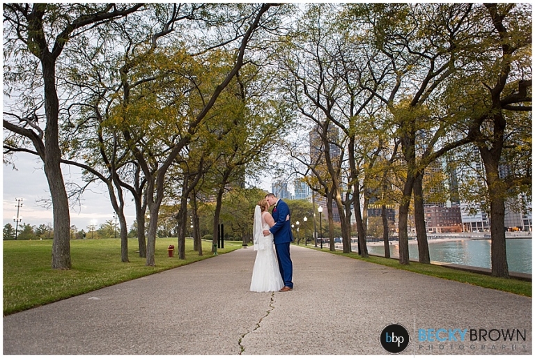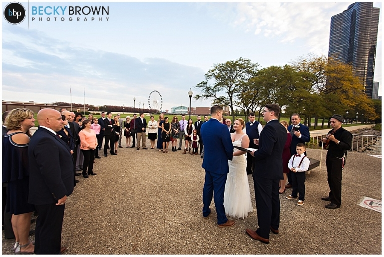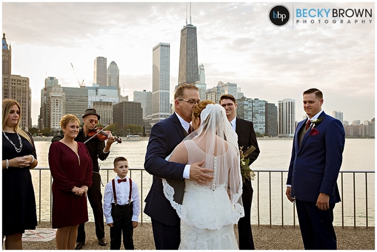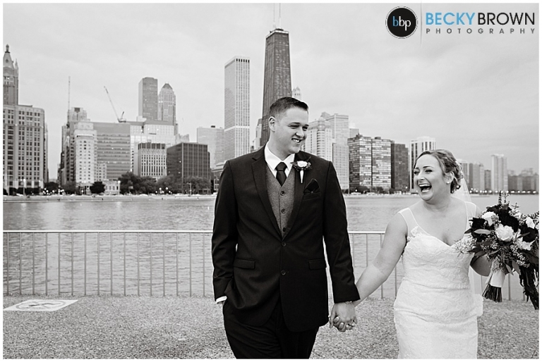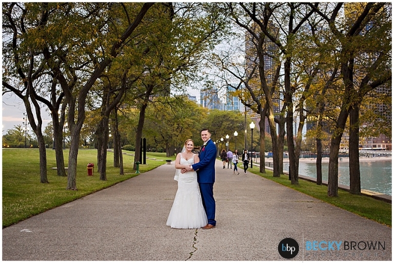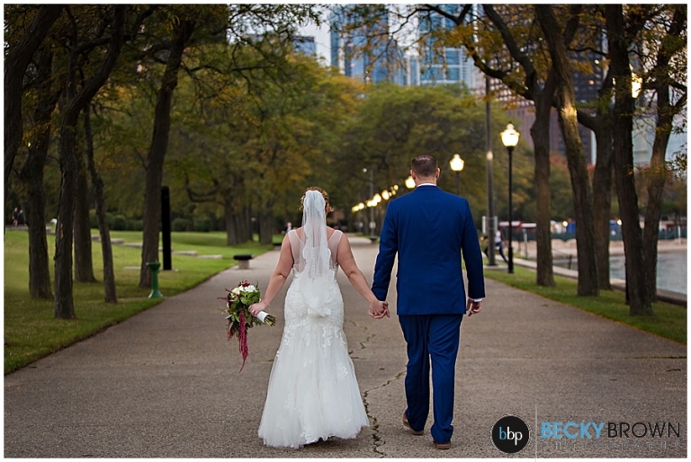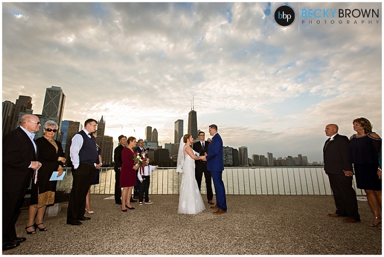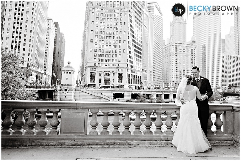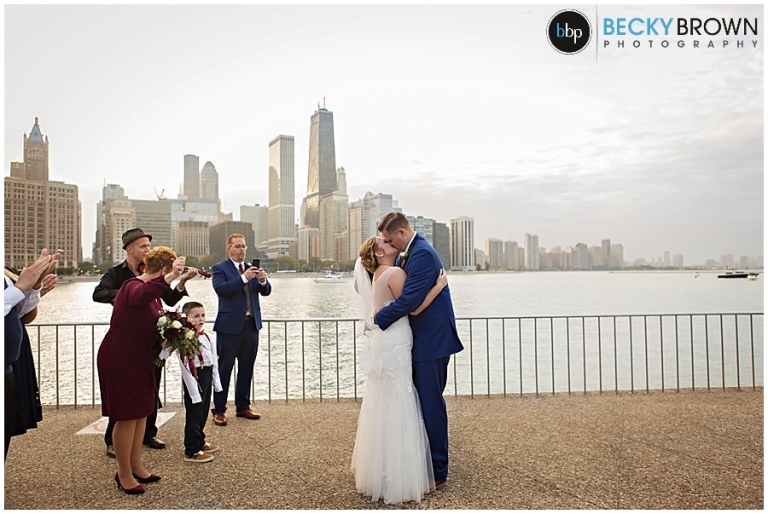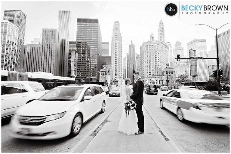 I met them at their hotel for a first look before headed out to the Wrigley Building for photos. I have to say that I love their color palette. Nathan wore a blue suit and the pop of crimson flowers was a perfect compliment. And most of their family followed along as well!