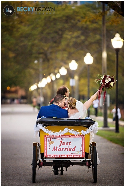 They hired a pedicab to transport guests back to the shuttle since it’s a little walk to the ceremony site. He came back to pick up the newlyweds at the end which made for a cute exit photo as they headed off to join everyone for dinner.