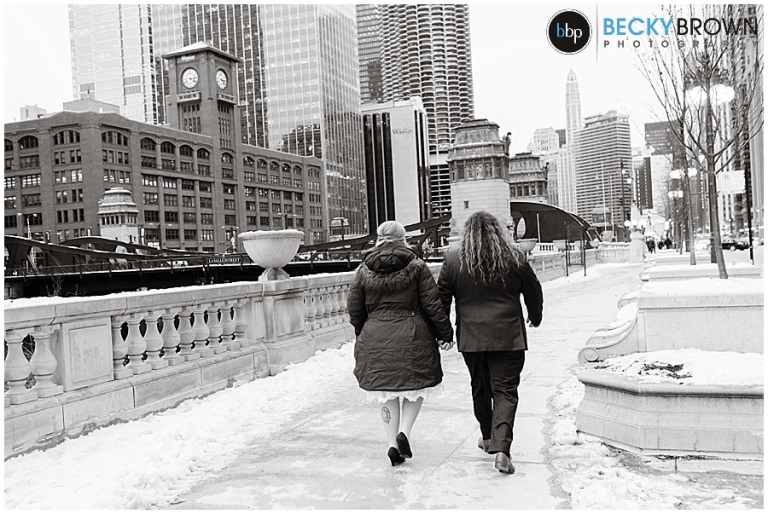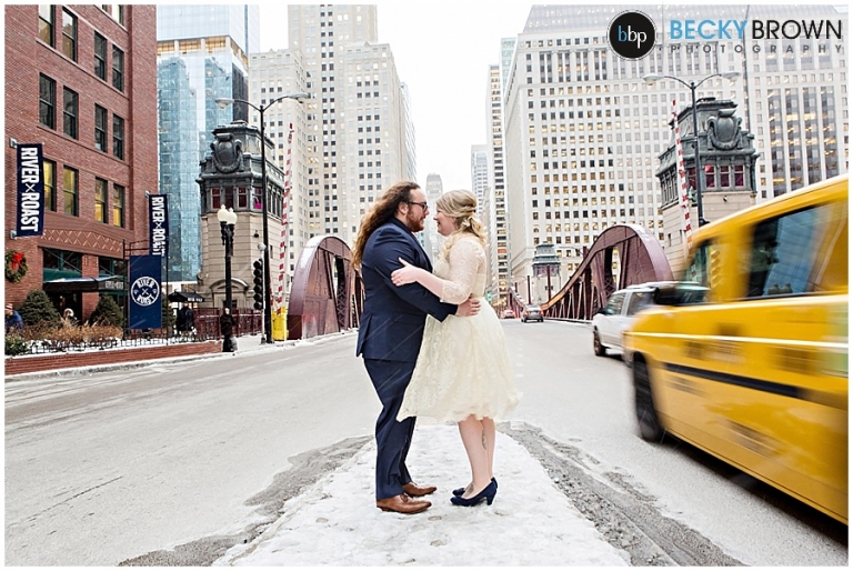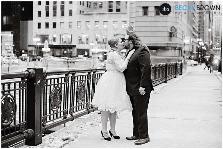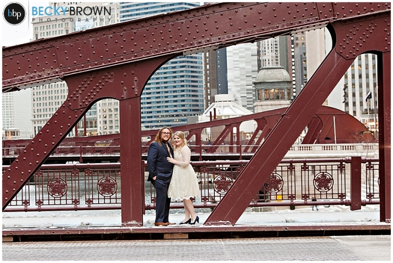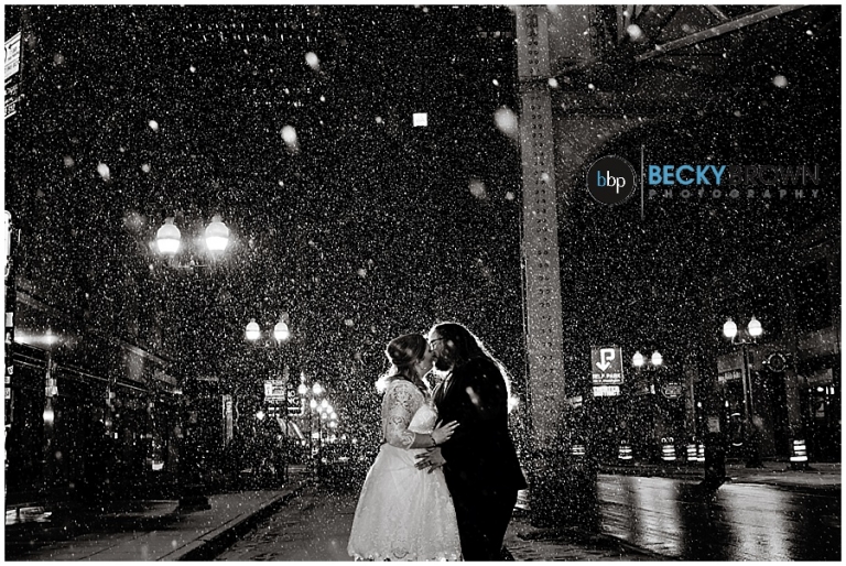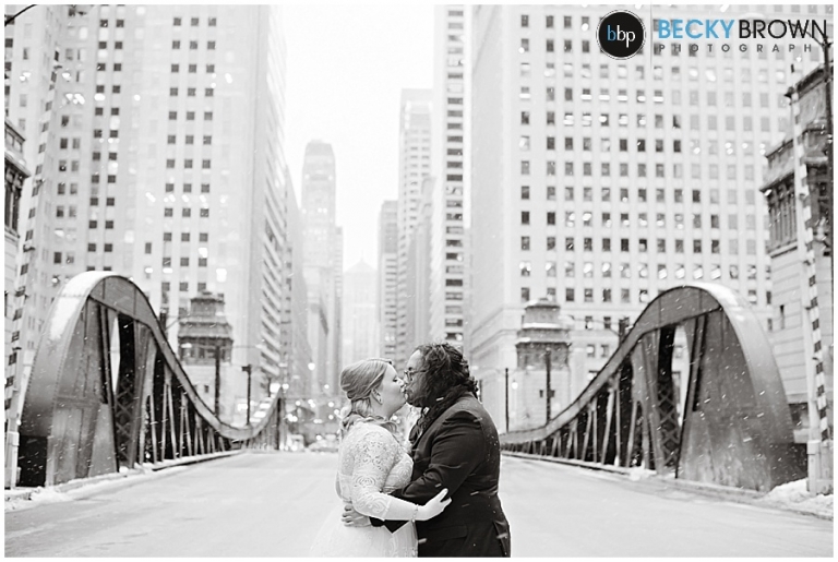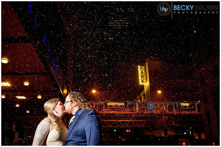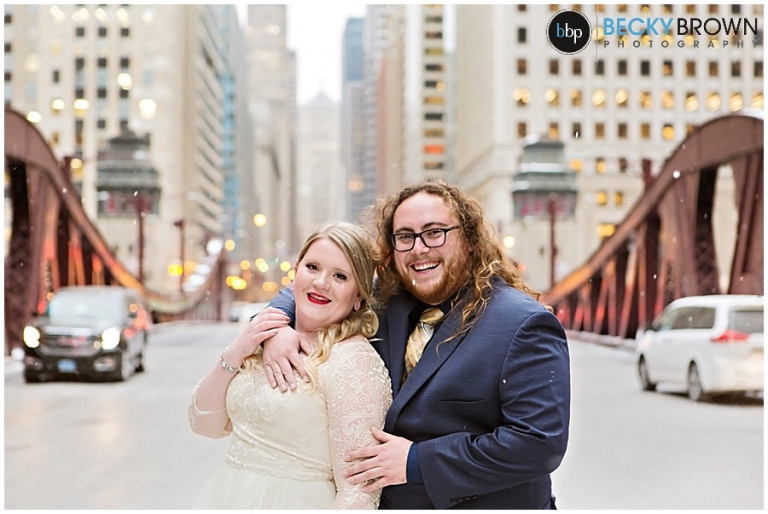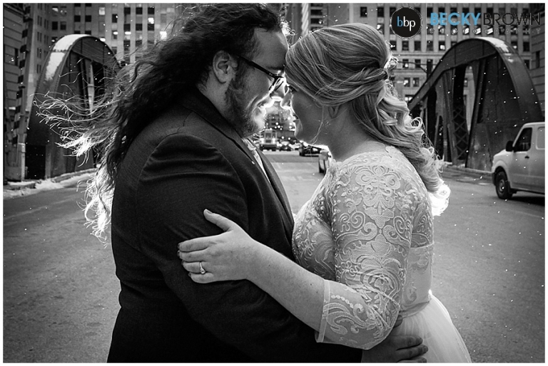 I met them at Hotel Allegro for first look before we headed out into the cold for some photos at LaSalle Bridge. They were troopers as it was not warm to put it nicely! We got a few fresh flakes falling just as we were wrapping up, but the real luck came later that evening.