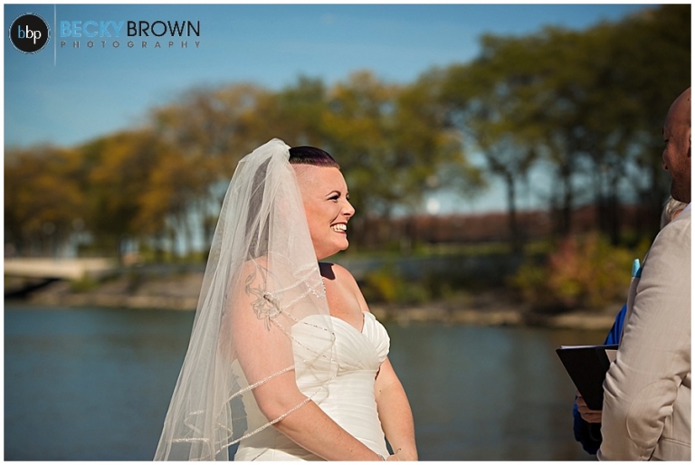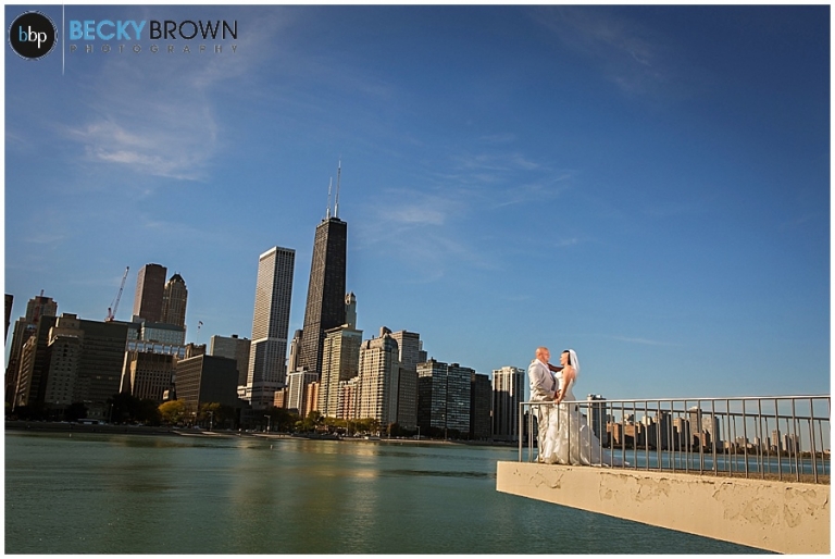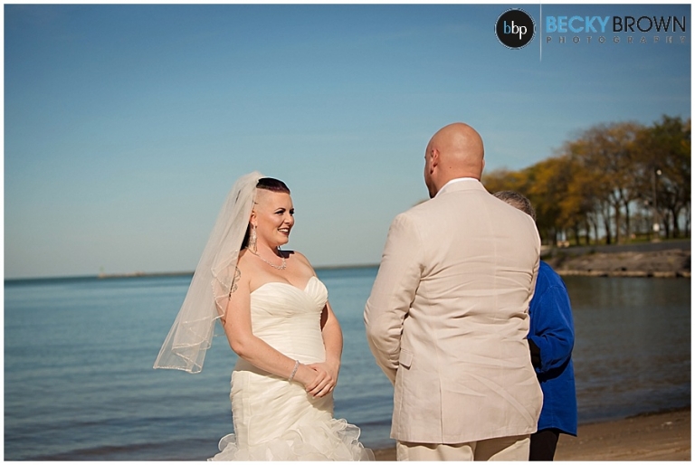 I met Heather downtown where Kate was finishing up her hair. We sent Jason a couple blocks away to the Riverwalk to wait for his bride. These two are so much fun and so full of life and energy. So naturally their first look was amazing. From there we headed off to Ohio Street Beach for them to say I do with their feet in the sand! Thankfully this was mid October so the beach was nearly empty. In the prime summer months its always packed with people!