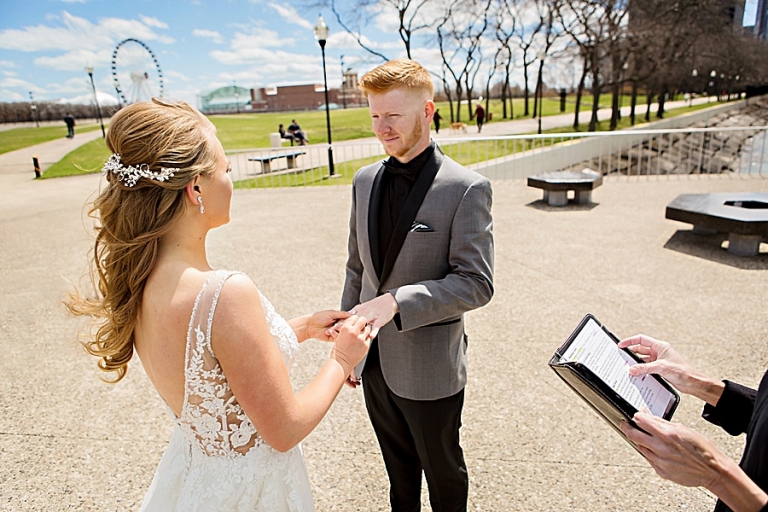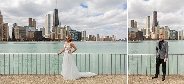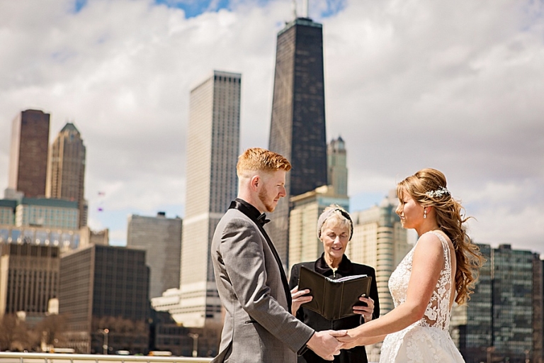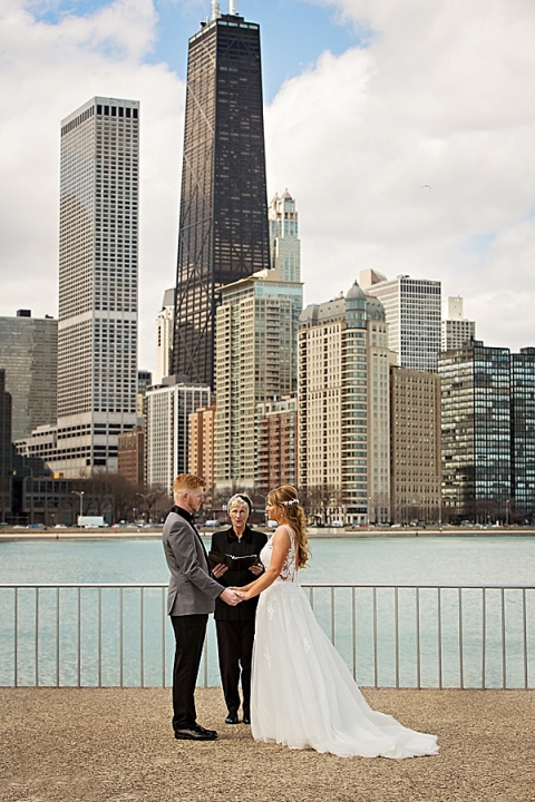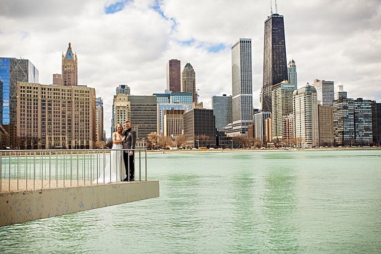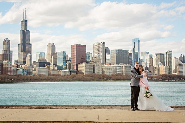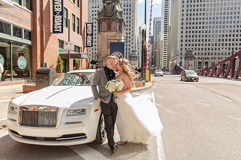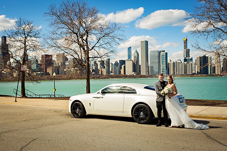 We headed out to their ceremony at Olive Park which included vows that brought us all to tears at one point! On the way there we realized we had forgotten the flowers at the hotel so we circled back. I don’t think anyone was upset to spend a little more time in the car. We then headed to LaSalle Bridge and ended out by Alder Planetarium for some skyline photos with the car.