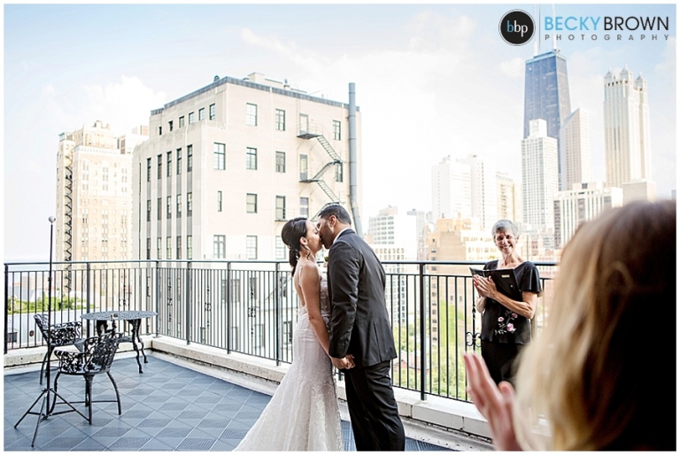 I met them at Public Hotel where they had rented a suite with an amazing terrace that we did the ceremony on. From there we headed to Olive Park to catch an amazing sunset for portraits. They headed out to dinner and drinks after and spent their mini honeymoon rocking out in Grant Park for Lolla for the next few days!