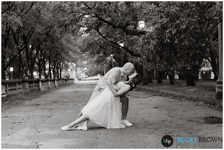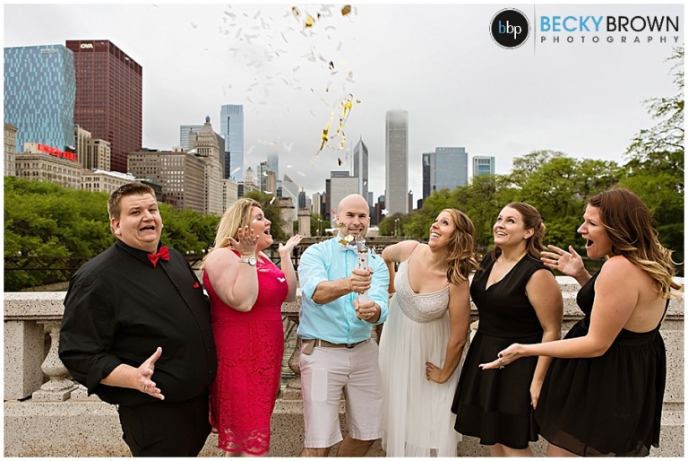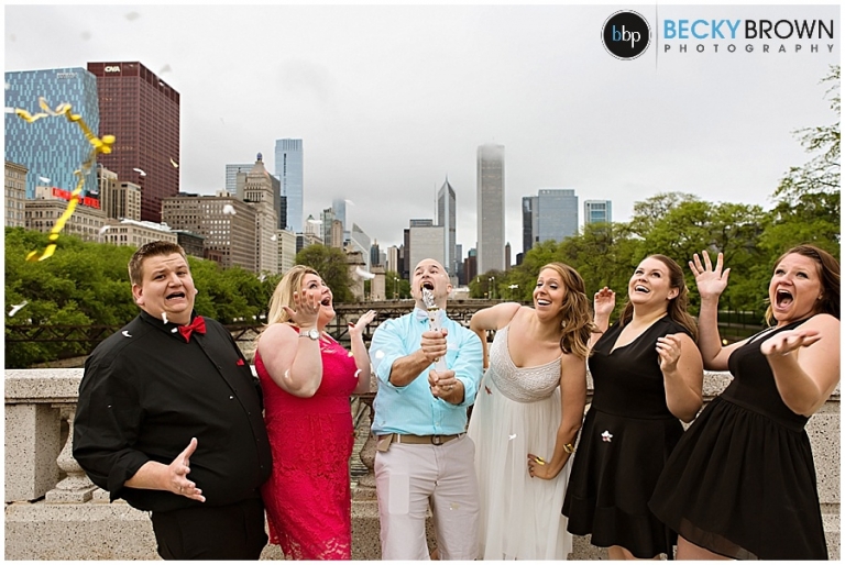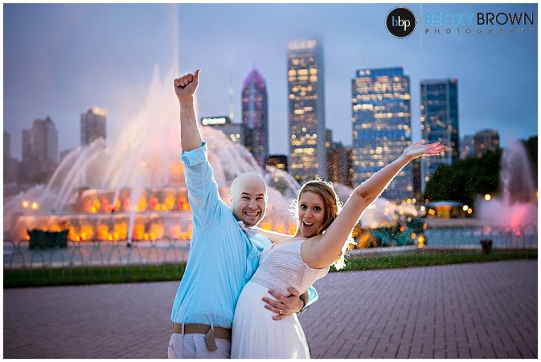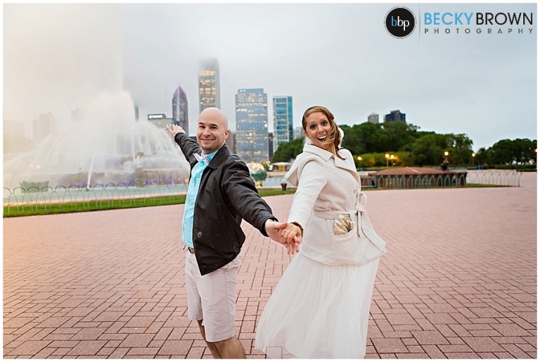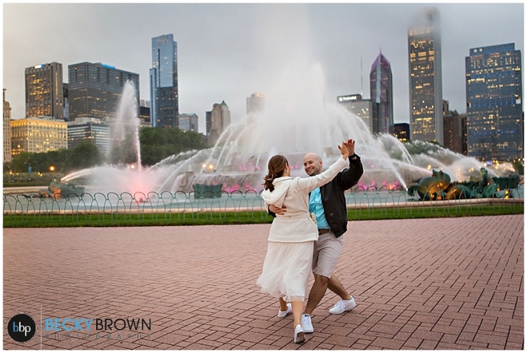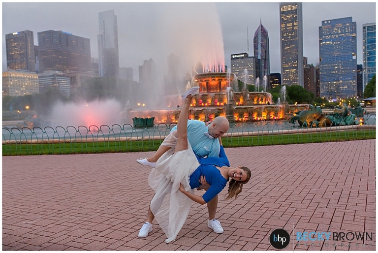 Thankfully by the time the ceremony ended the rain had let up and we decided to venue out for some photos. It seemed only fitting that these two busted out some dance moves as they met through dance! They definitely win the award for best dippers of the year! We ventured over to Buckingham Fountain for some night photos before they rejoined their friends to celebrate and thaw out!