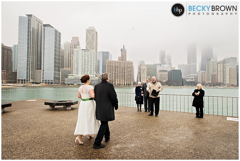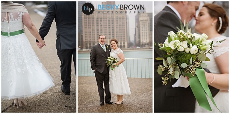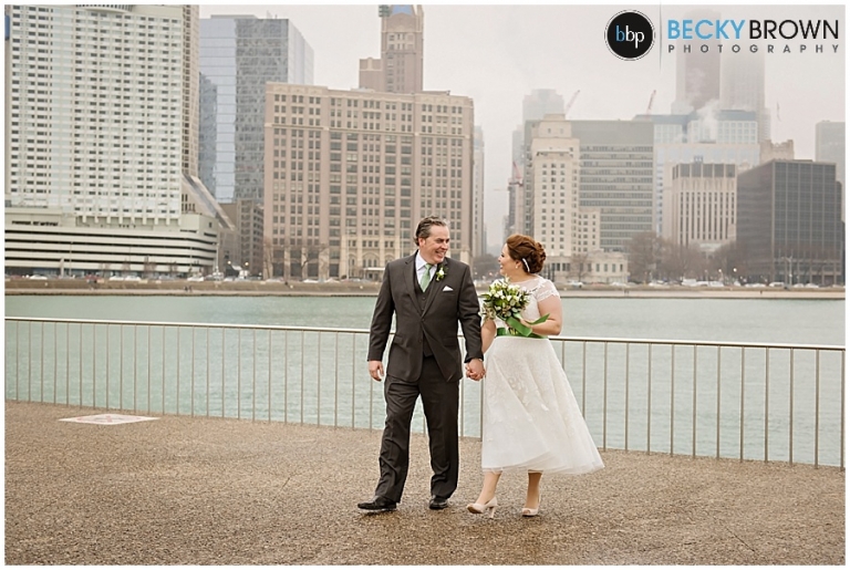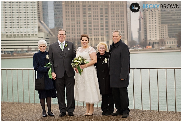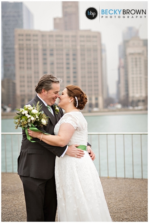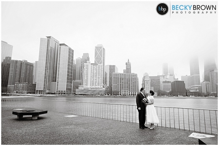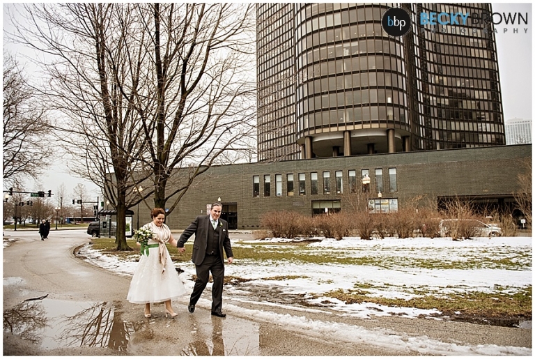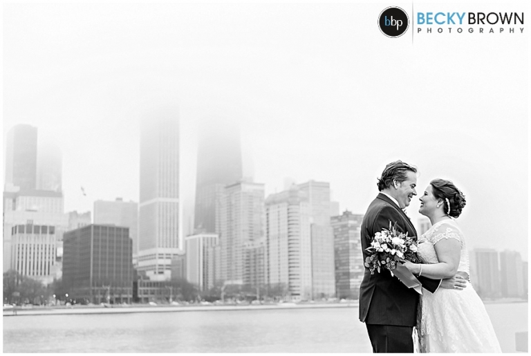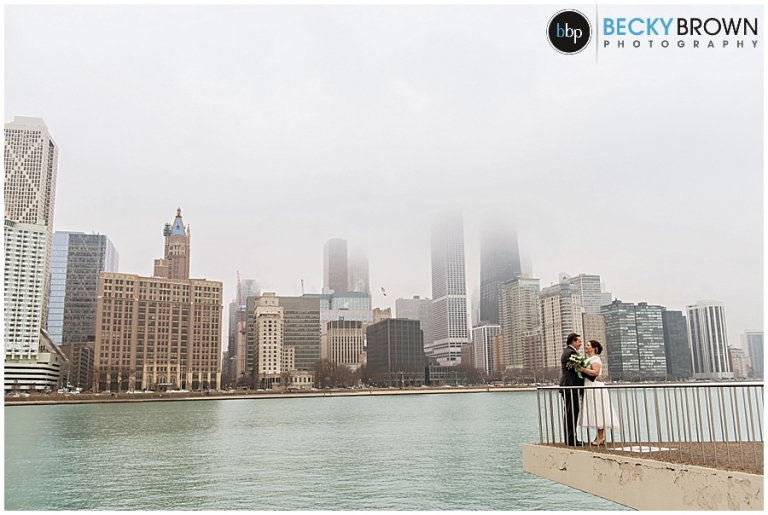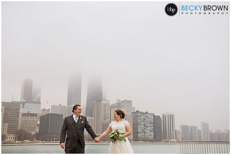 Our associate photographer Carrie met them at the Swissotel for getting ready and first look before heading over to Olive Park for their ceremony. They were joined by a few close family members as they said “I do.” And yes that is snow you see in some of those photos! They toughed out the cold weather and fog for photos at the park and a few downtown before rejoining their family to celebrate (hopefully with some irish whiskey or green beers!).