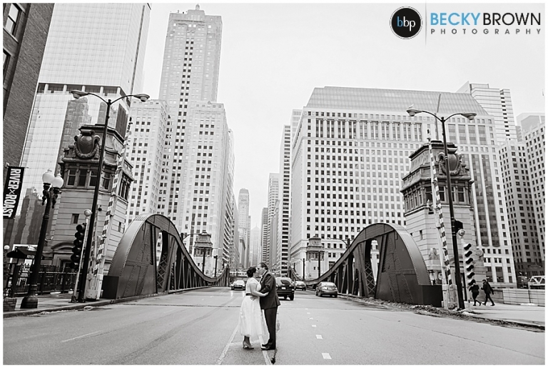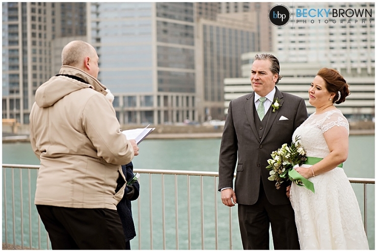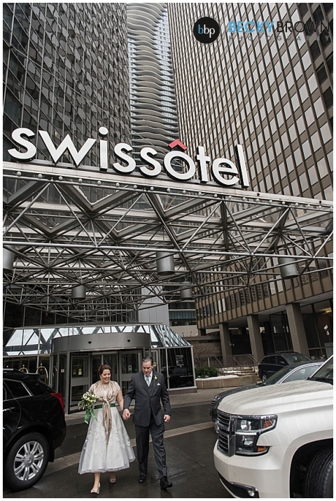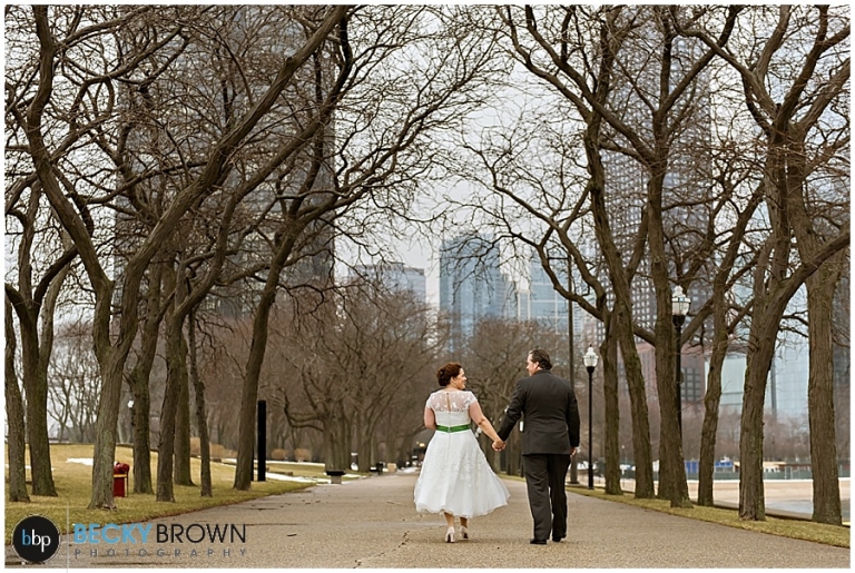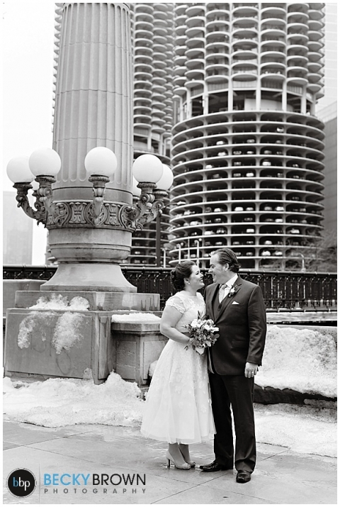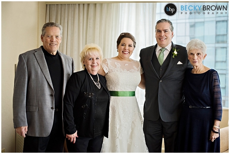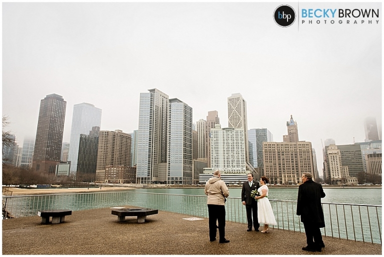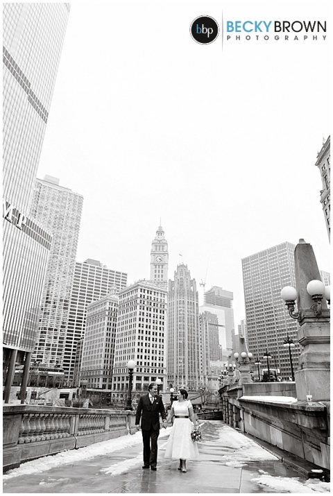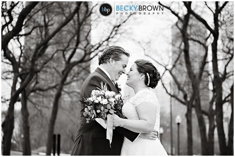 Our associate photographer Carrie met them at the Swissotel for getting ready and first look before heading over to Olive Park for their ceremony. They were joined by a few close family members as they said “I do.” And yes that is snow you see in some of those photos! They toughed out the cold weather and fog for photos at the park and a few downtown before rejoining their family to celebrate (hopefully with some irish whiskey or green beers!).
