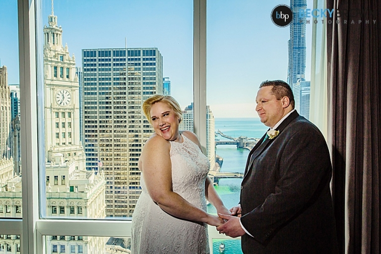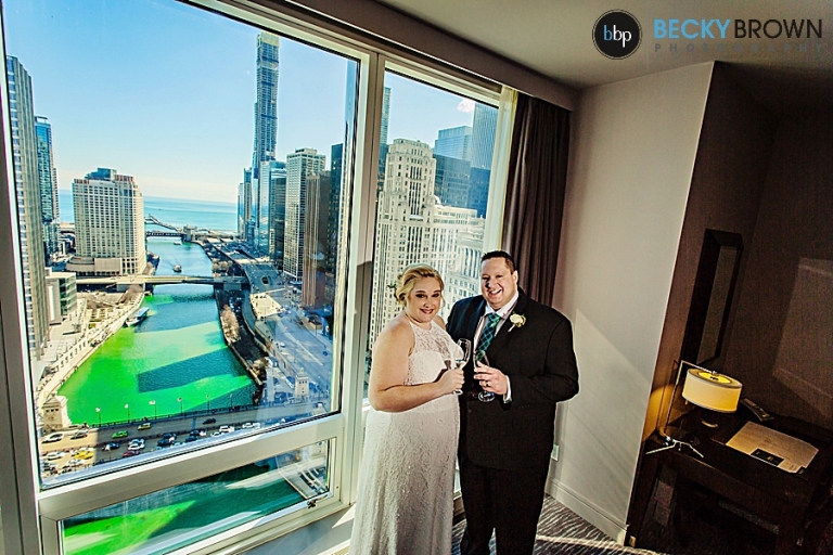 The river stays pretty bright green for about 48 hours so we still had a vibrant green backdrop for their ceremony. They got a hotel suite at Trump Tower that overlooked the river which was perfect for their private I do’s. March is usually still really cold here so having an indoor option for ceremony is key and the floor to ceiling city views are amazing!