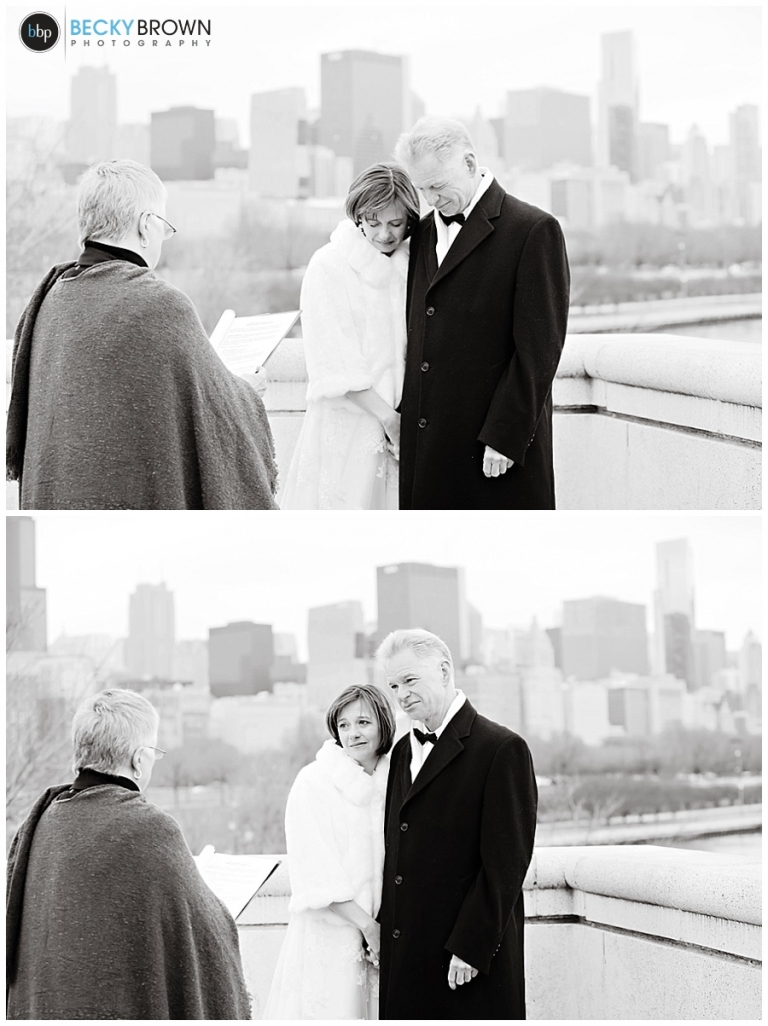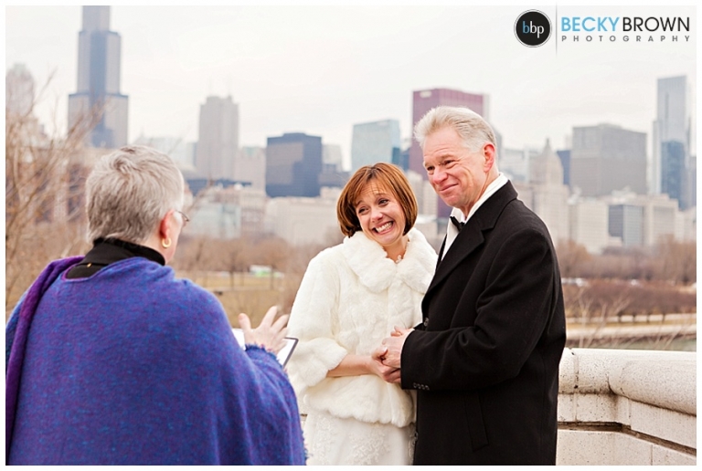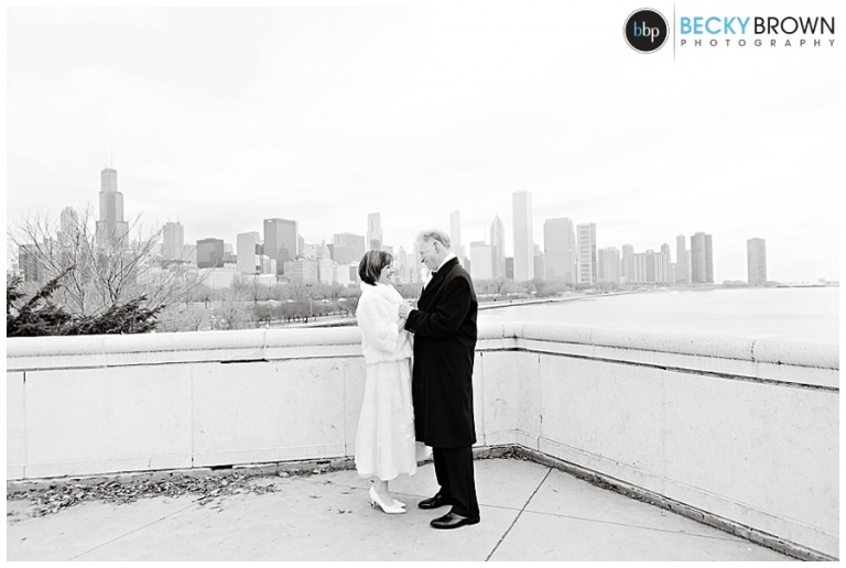 Meet Myndee and Chuck! They are one of the sweetest couples ever and brave as well for toughing out the cold for their ceremony! I met them at the Waldorf Astoria for a few photos before we headed out to Museum Campus for their ceremony. The skyline view from out there is the best, but being right next to the lake makes it ever colder. I think it was a high of maybe 17 degrees not factoring in the windchill… so really cold!