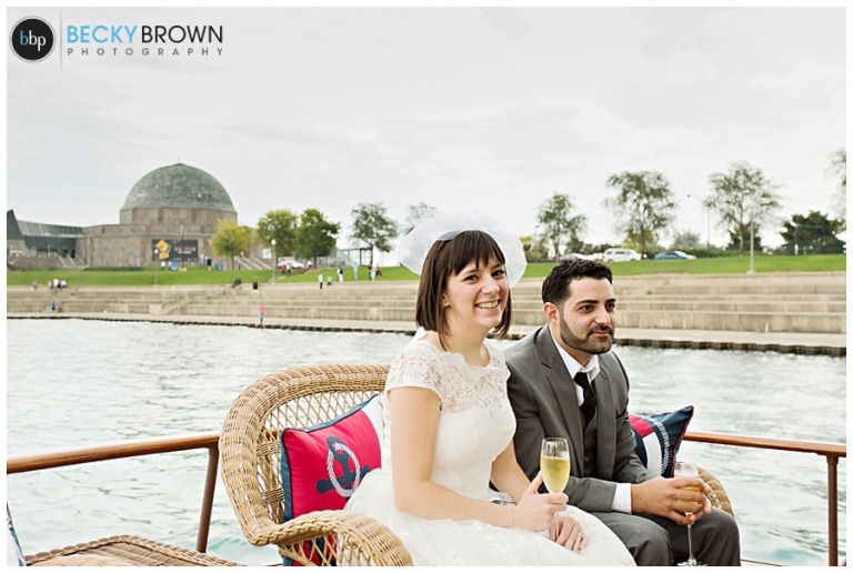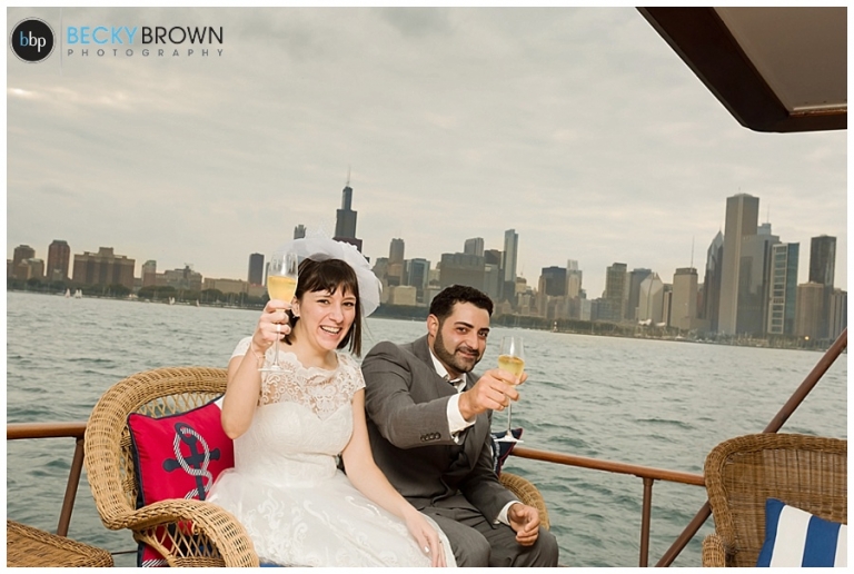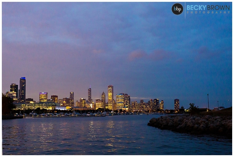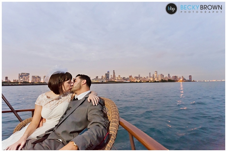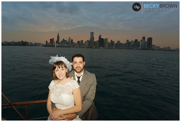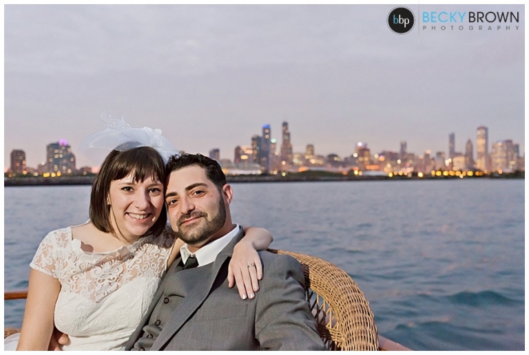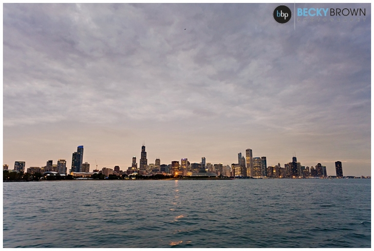 Once we got far enough out to get a nice skyline view we stopped for a bit so they could exchange vows and rings with the skyline as their backdrop. After that it was time to pop some champagne and continue our cruise online the lakefront! Eva and I decided we have the best jobs ever as it felt more like a mini vacation than work! As the sun started setting we headed back with a quick stop along the way to do some night photos with the skyline.
